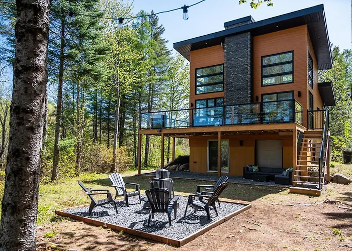 Willa Chalet Natur Lakefront - Hot Tub - Fireplace - Ski - Waterfront - Private Big Land - Pedal Boat oferuje bliskość pobliskich atrakcji turystycznych, takich jak Lac Bastien w odległości 25-minutowego spaceru. Do domku alpejskiego Gości jest taras ze stołem obiadowym.